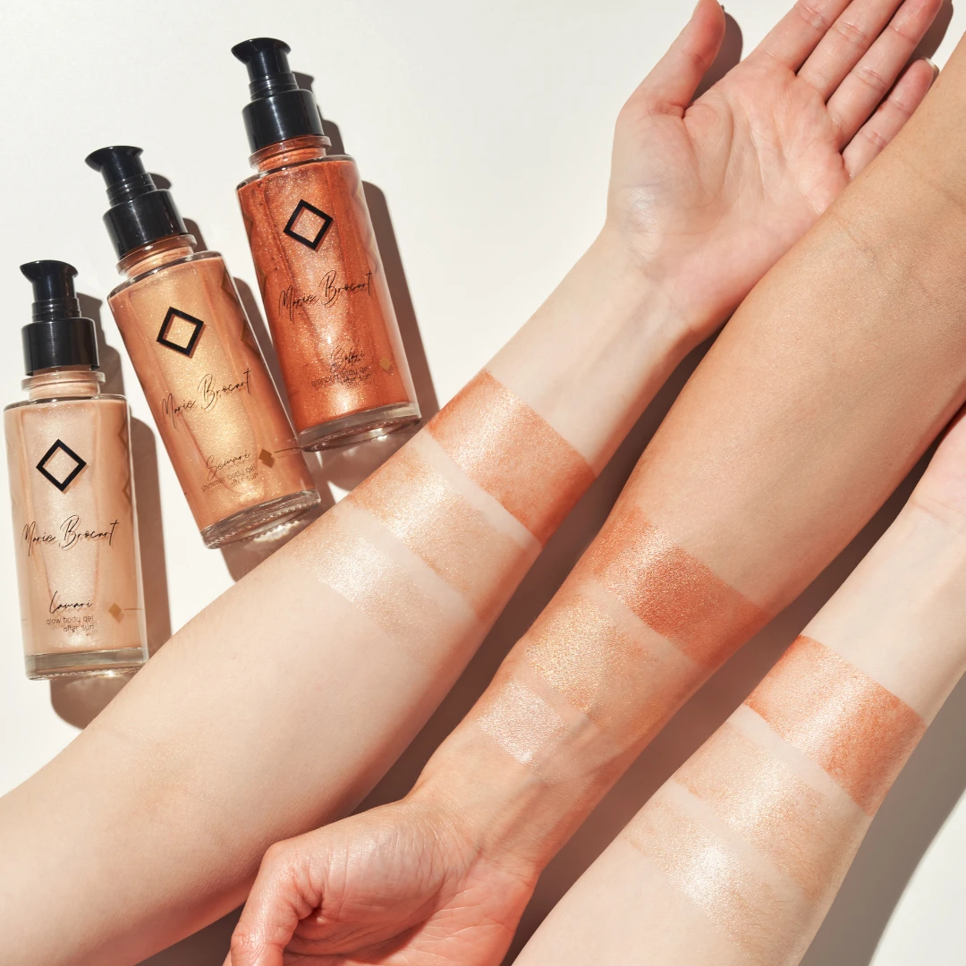 Poza błyszczącymi drobinkami, żel wzbogacono w najwyższej jakości, specjalnie wyselekcjonowane składniki i ekstrakty roślinne. Po użyciu pozostawia na skórze delikatny film, który szybko się wchłania i pozostawia skórę promiennie rozświetloną i nawilżoną.